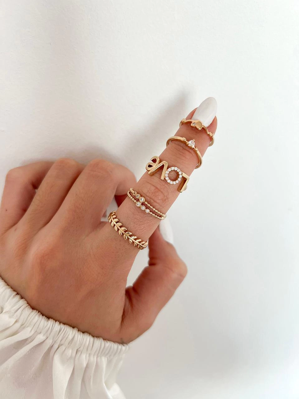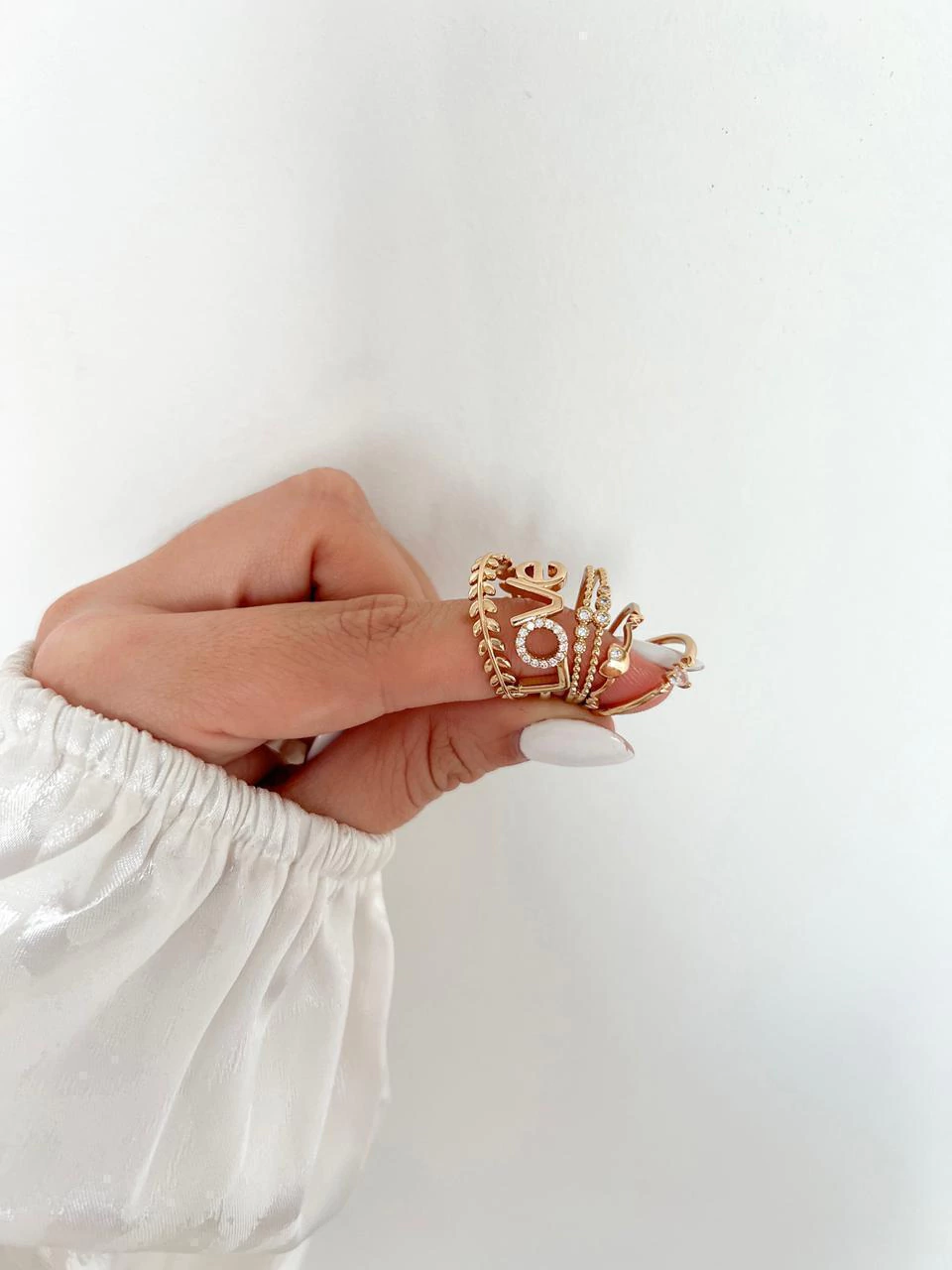 AN91371 - KIT DE ANÉIS LOVE CRAVEJADO - FOLHEADO A OURO