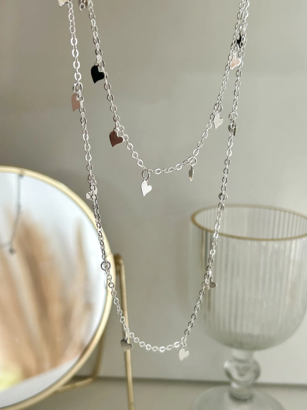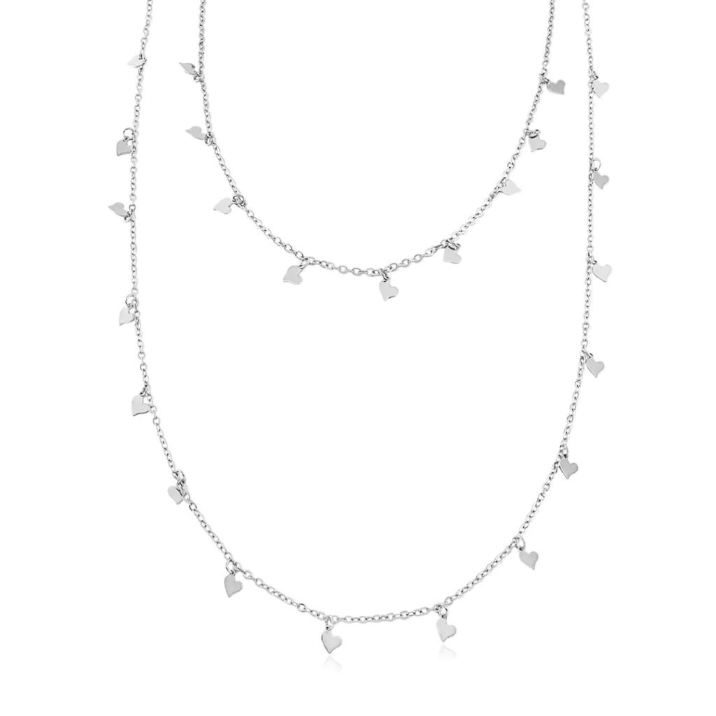 CO91218 - COLAR DUPLO MINI CORAÇÕES LISOS - FOLHEADO A PRATA 925