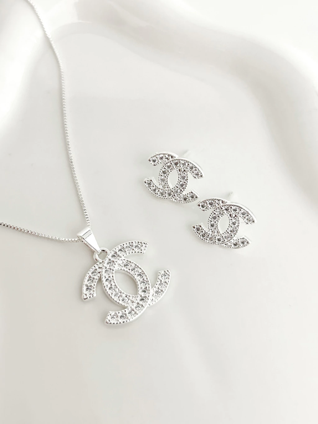 CONJ9486 - CONJUNTO COLAR + BRINCO INSPIRAÇÃO CH CRAVEJADO - FOLHEADO A PRATA 925