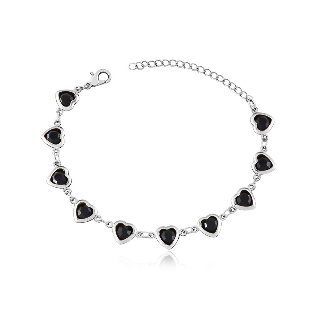PU91353 - PULSEIRA MINI CORAÇÕES PRETO - FOLHEADO A PRATA 925